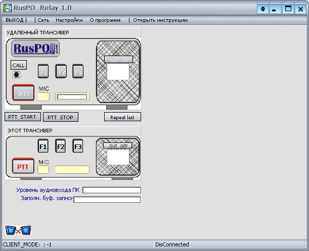 Кнопки <F1-F3> - следует нажимать, если рация подключена к LPT порту и требуется управление какими-то кнопками рации. Соответствующая опция должна быть включена в настройках. Если управляющий сигнал достиг удаленного ПК, значок "=" появляется над соответствующей кнопкой.