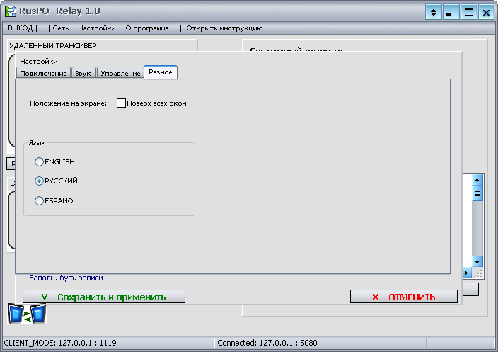 Мы рады предложить вам RusPO Relay - наш новый и особенный программный продукт. При его создании мы применили собственные разработки и технологии в областях записи и обработки аудиосигнала (речи), надежной передачи сжатого голоса и управляющих сигналов через сети LAN или Internet (VoIP), а также сопряжения со специальными устройствами. Кроме того, впервые в нашем серийном коммерческом продукте применен Localizator - простое и удобное средство для корректного перевода пользовательского интерфейса программы на любой язык или даже диалект силами самого пользователя, его системного администратора или регионального дистрибьютора.