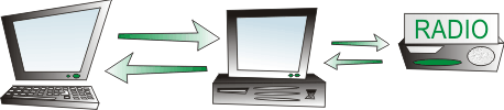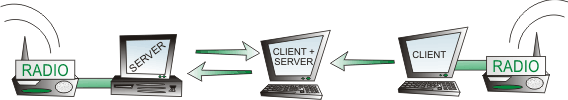 Для полноценной работы в сети необходимо минимум два экземпляра программы (на двух компьютерах). Рация может быть подключена как компьютеру, играющему при сетевом соединении роль сервера, так и к компьютеру, играющему роль клиента.